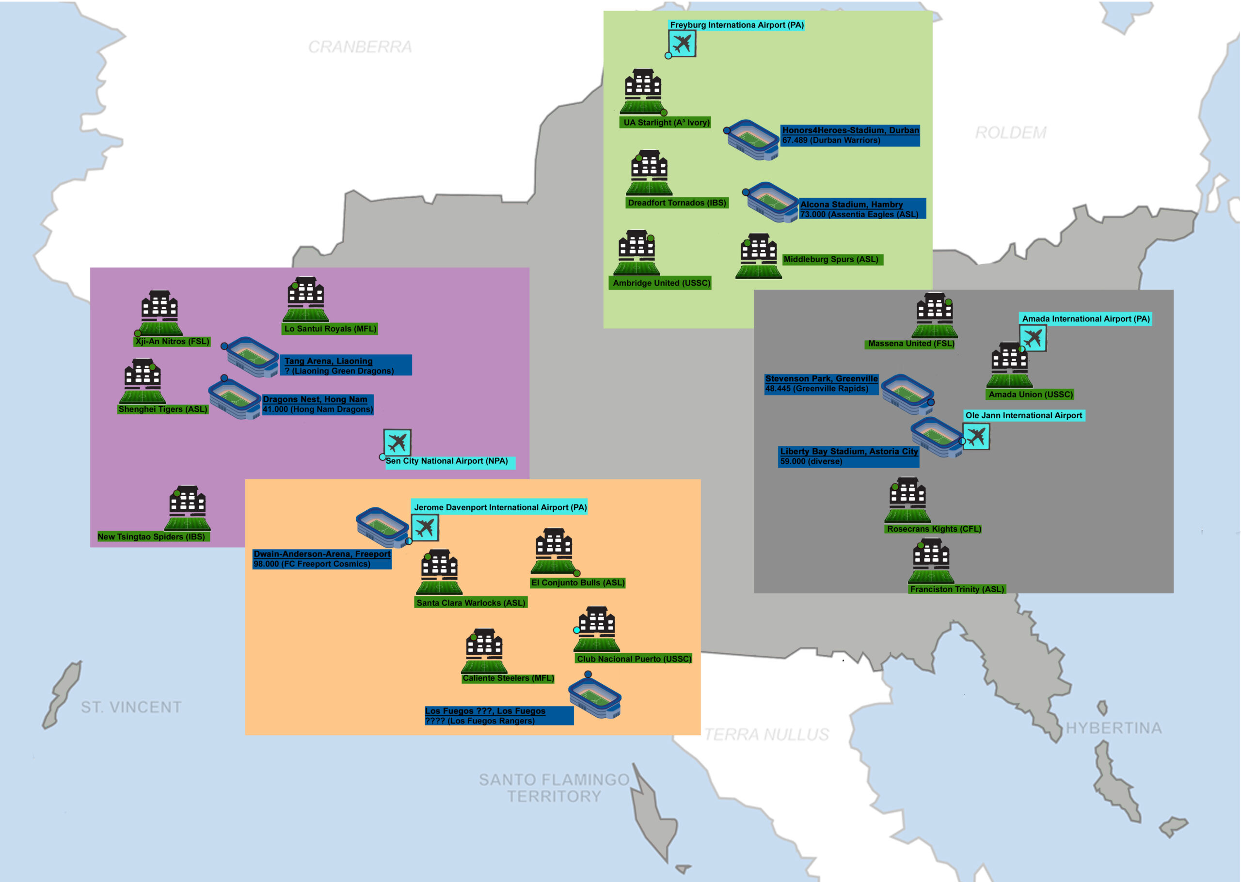 - Spielorte? - kapazitätstechnisch geeignete Stadien, die idealerweise in räumlicher Nähe je Gruppe liegen, um weite Reisen während des Turniers zu vermeiden